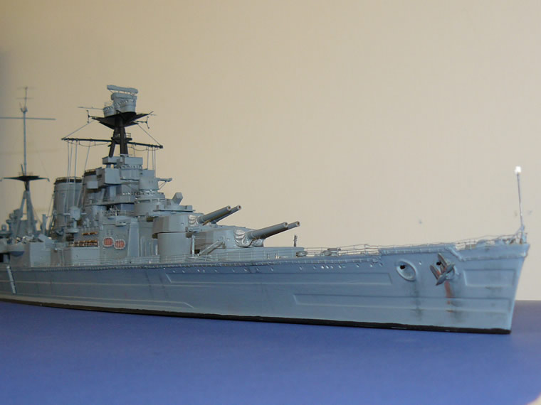 This view captures the latent power of HMS Hood and shows some of the detail that has been incorporated into the model, including the turned brass gun barrels.