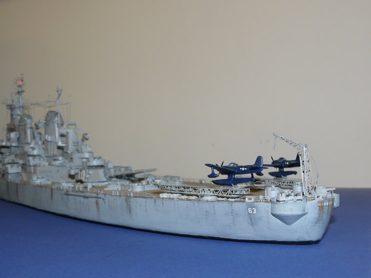 The "Fantail" (what we Limey's would call the Quarterdeck) complete with two aircraft. The catapults and recovery crane were fabricated from etched brass supplied with the Gold Medal detailing kit.