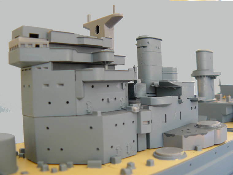 The basic mouldings in the kit are very crisp and need little attention. The scuttles in the bridge structure have been drilled out and the parts temporarily assembled to check for fit; they are not yet fixed in position.