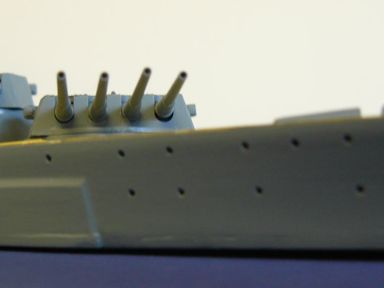 "A" Turret, with four of the turned brass 14in barrels in evidence. There is still work to be done with filler round the waterline!