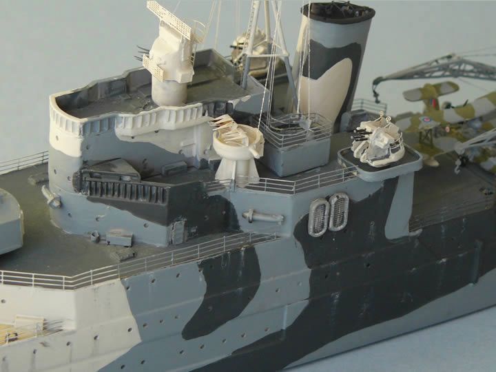The complex paint scheme was painstakingly applied by Ben from drawings in Town Class Cruisers (Alan Raven and John Roberts) and various photographic references.