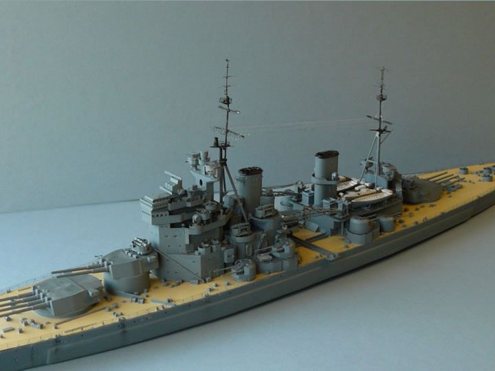 Construction of the model involved reworking many of the details - radars, masts, cranes and the armament. This was greatly aided by the use of etched details supplied by White Ensign Models.